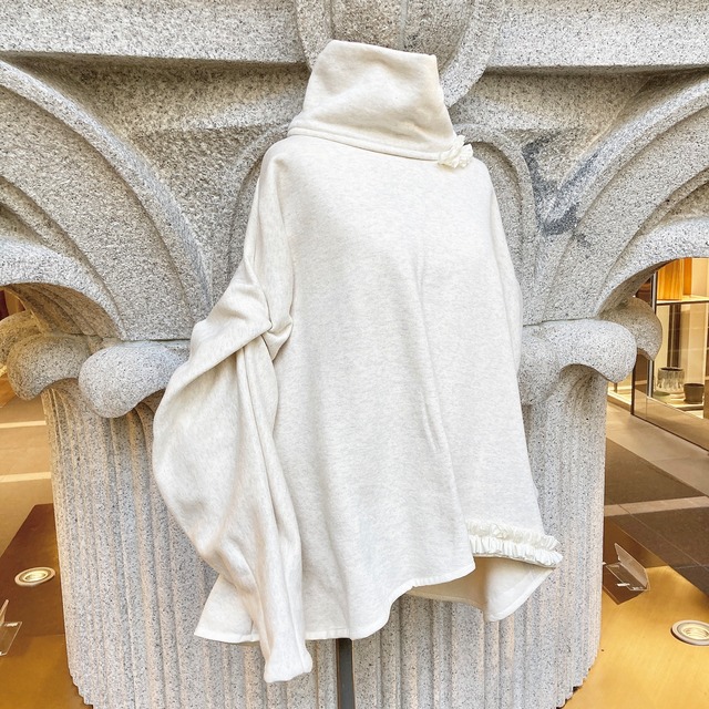 首周りとお袖、どちらもアシンメトリーに施された小さなフリルが、可愛らしさを引き立たせます。 裏起毛仕立てで、寒い季節でも暖かく過ごせる一枚となっています。 - - - 素材 コットン100%(裏起毛) size フリー(9号〜11号) 総丈:約67.5cm ※タートル含まず 桁丈:約80cm 裾幅:約69cm ※1点ものですので、多少の誤差はご了承ください color 杢ホワイト - - - Rina-mamaが創り出す1点ものニット。 世界で1枚だけの洋服が作りたくて型紙を持たず、全て1点もので製作しています。 ◆お手入れについて 洗濯機を使って洗って頂けます。 気になられる方は、おしゃれ着用洗剤・ドライコースなどをお使いください。 お洗濯後に手で伸ばすだけのアイロン入らずのブラウスです。 気になる箇所だけ霧吹きを使って伸ばして頂く方法もあります。 お化粧が付いてしまったり、襟周りの黄ばみが気になる時は部分的にウタマロ石鹸を使って頂くと汚れが落としやすいです。