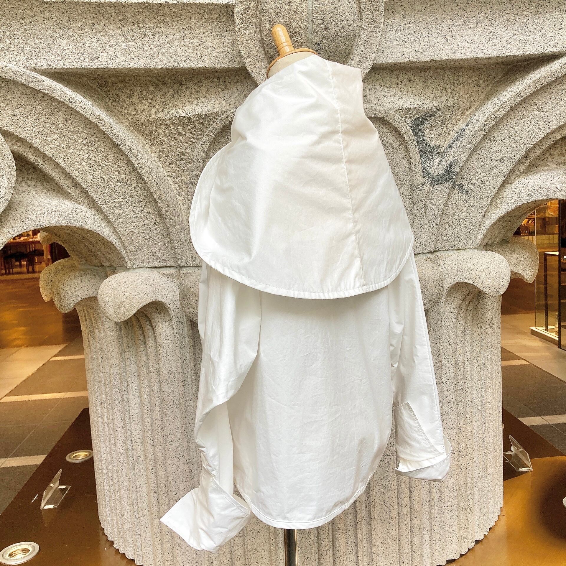 ストールを羽織ったようなバックスタイルが印象的なブラウス。
