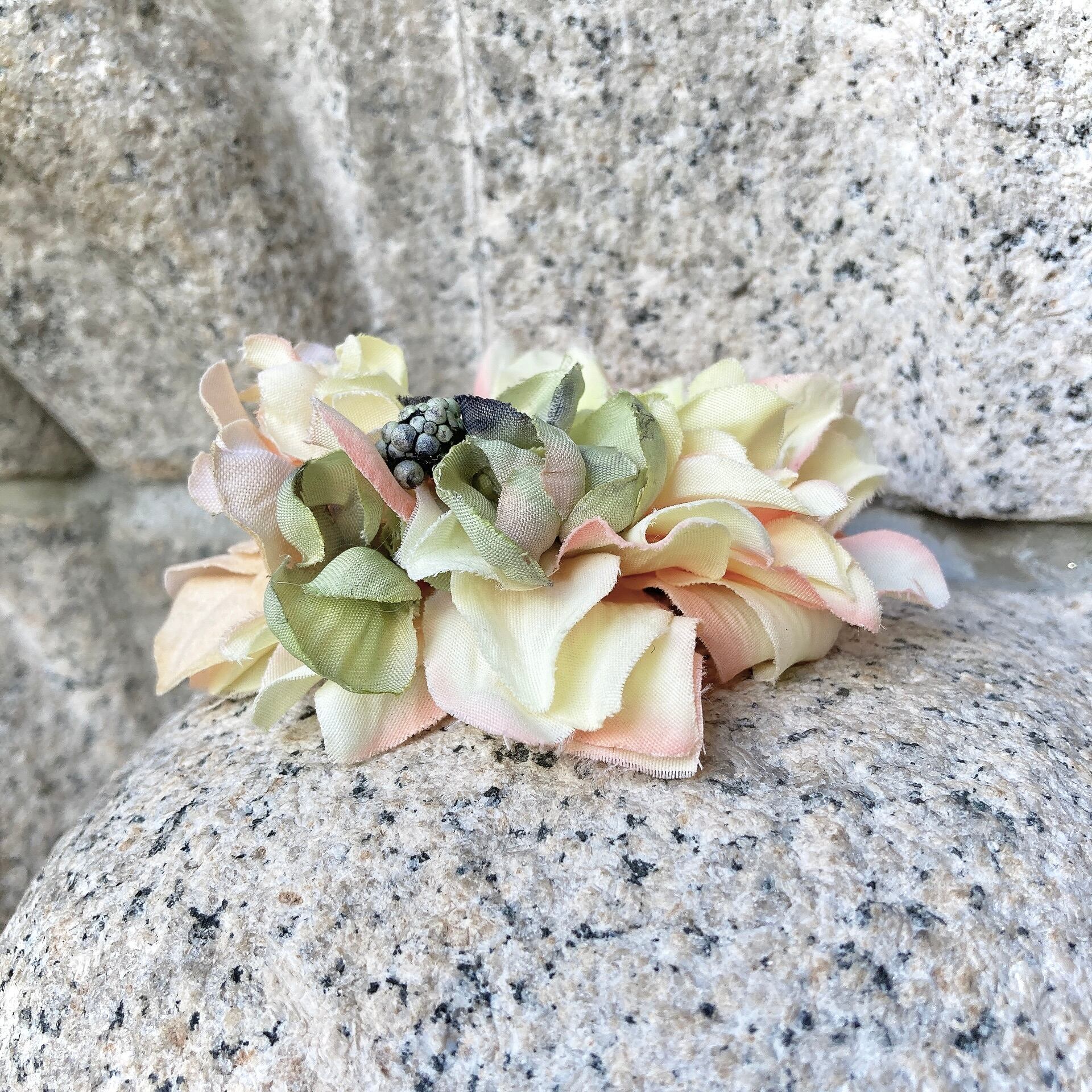 手染めのお花を使っておりますので、水濡れ、またそれにより色移りには十分ご注意くださいませ。