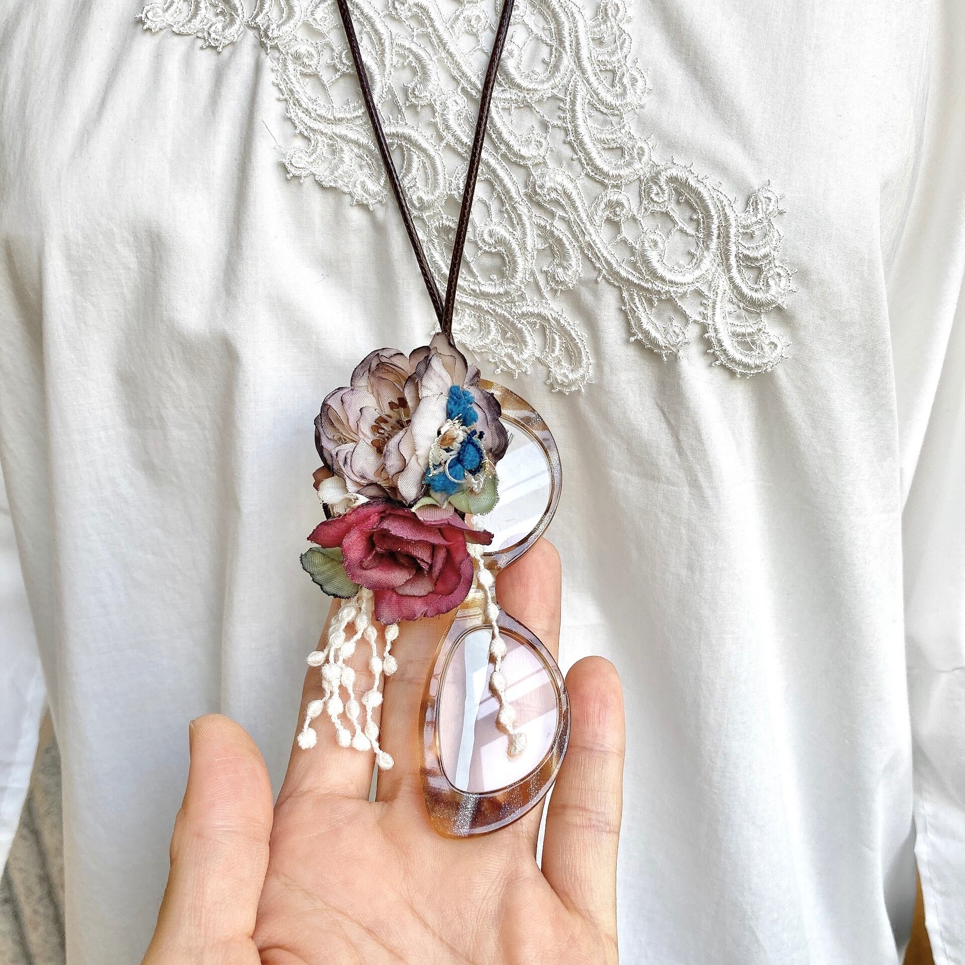 1.6倍のルーペにcotocotoらしいお花をつけてネックレスに仕立てました。
