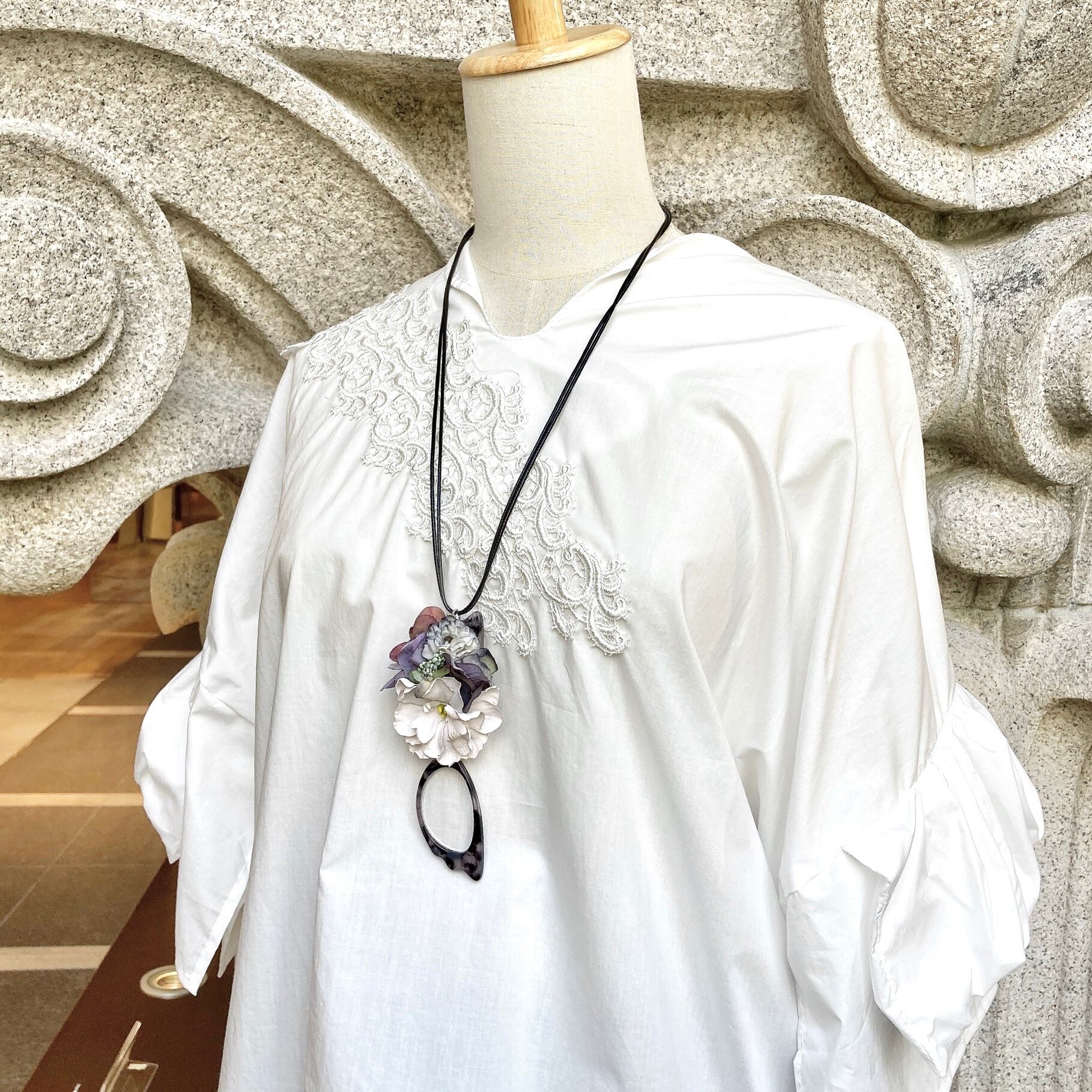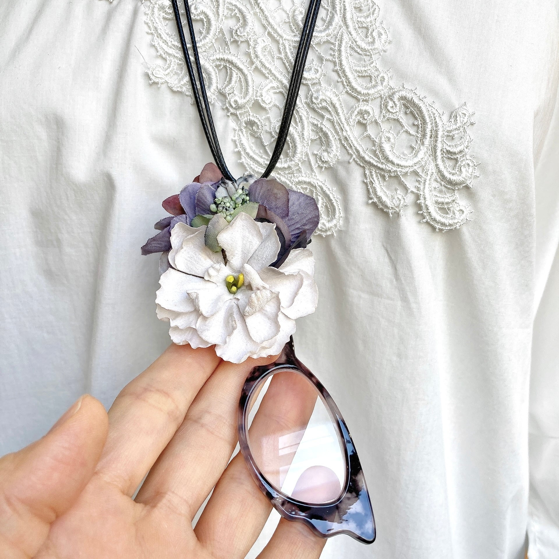1.6倍のルーペにcotocotoらしいお花をつけてネックレスに仕立てました。