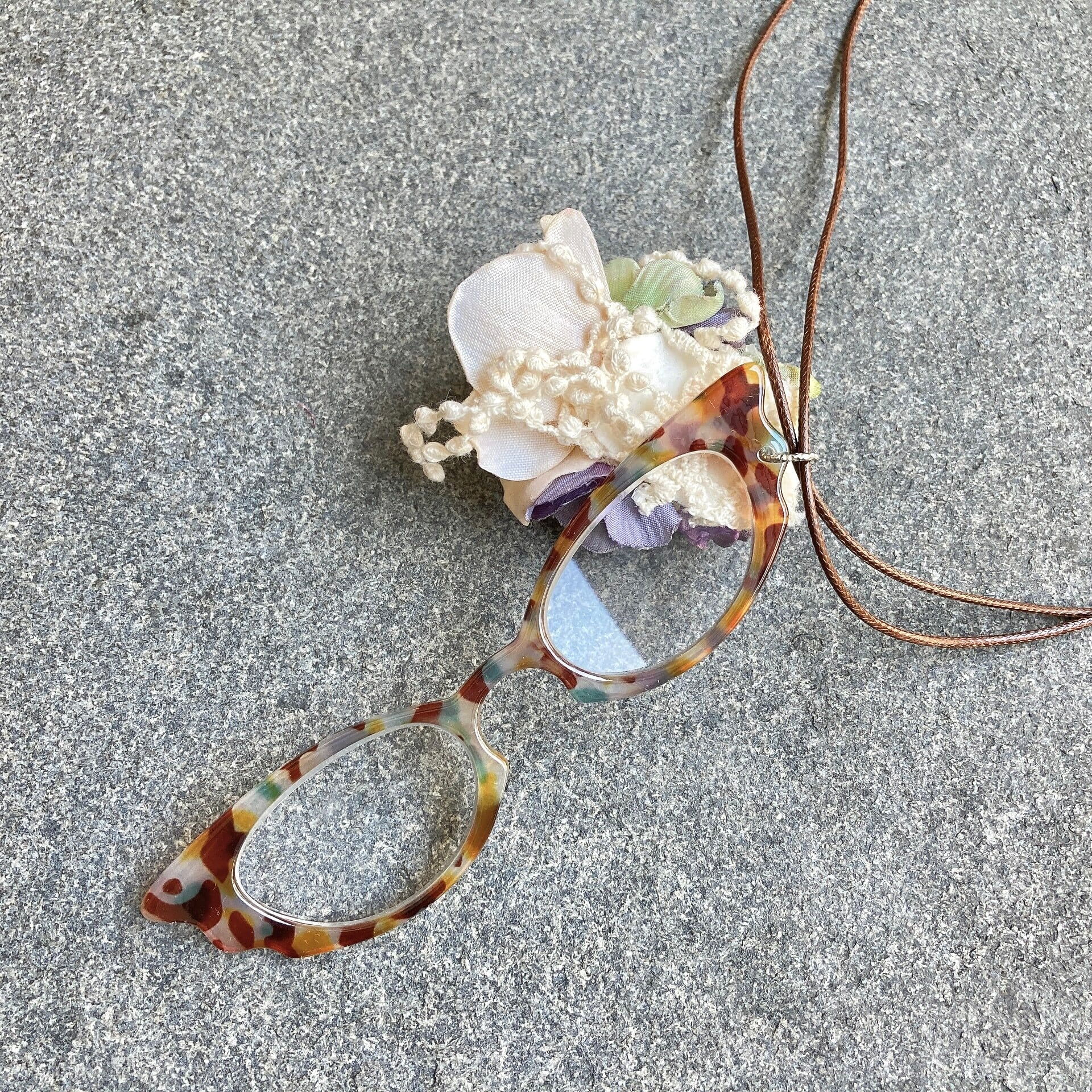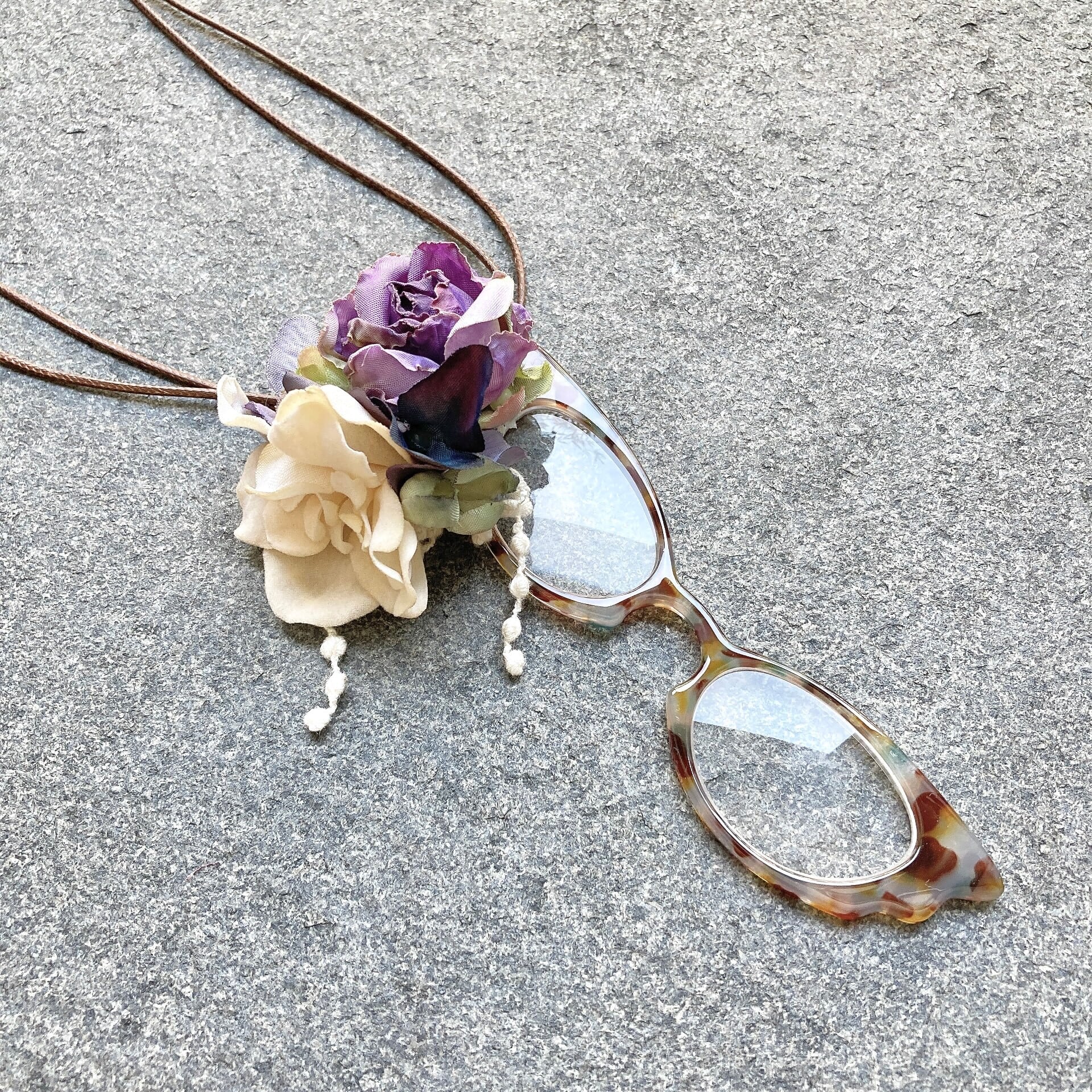 1.6倍のルーペにcotocotoらしいお花をつけてネックレスに仕立てました。