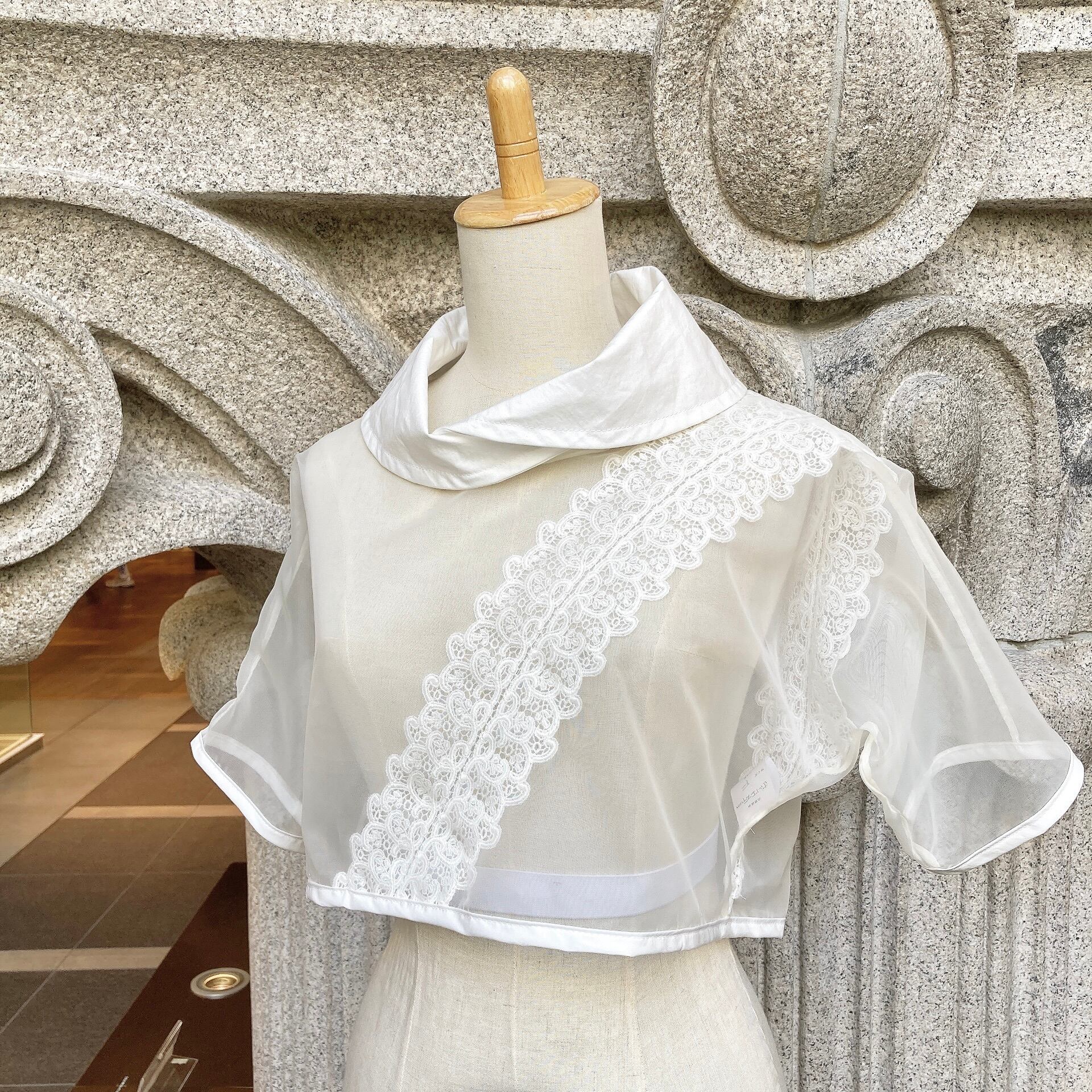 重ね着でお洒落度がアップするシアークロップドブラウス。