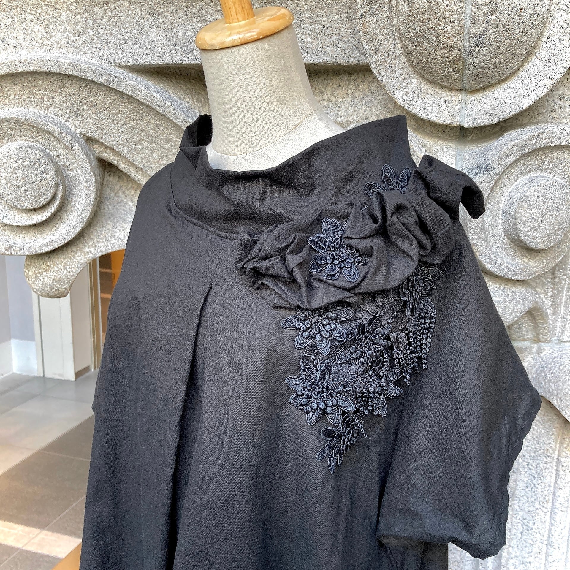 世界で1枚だけのブラウスが作りたくて型紙を持たず、全て1点もので製作しています。