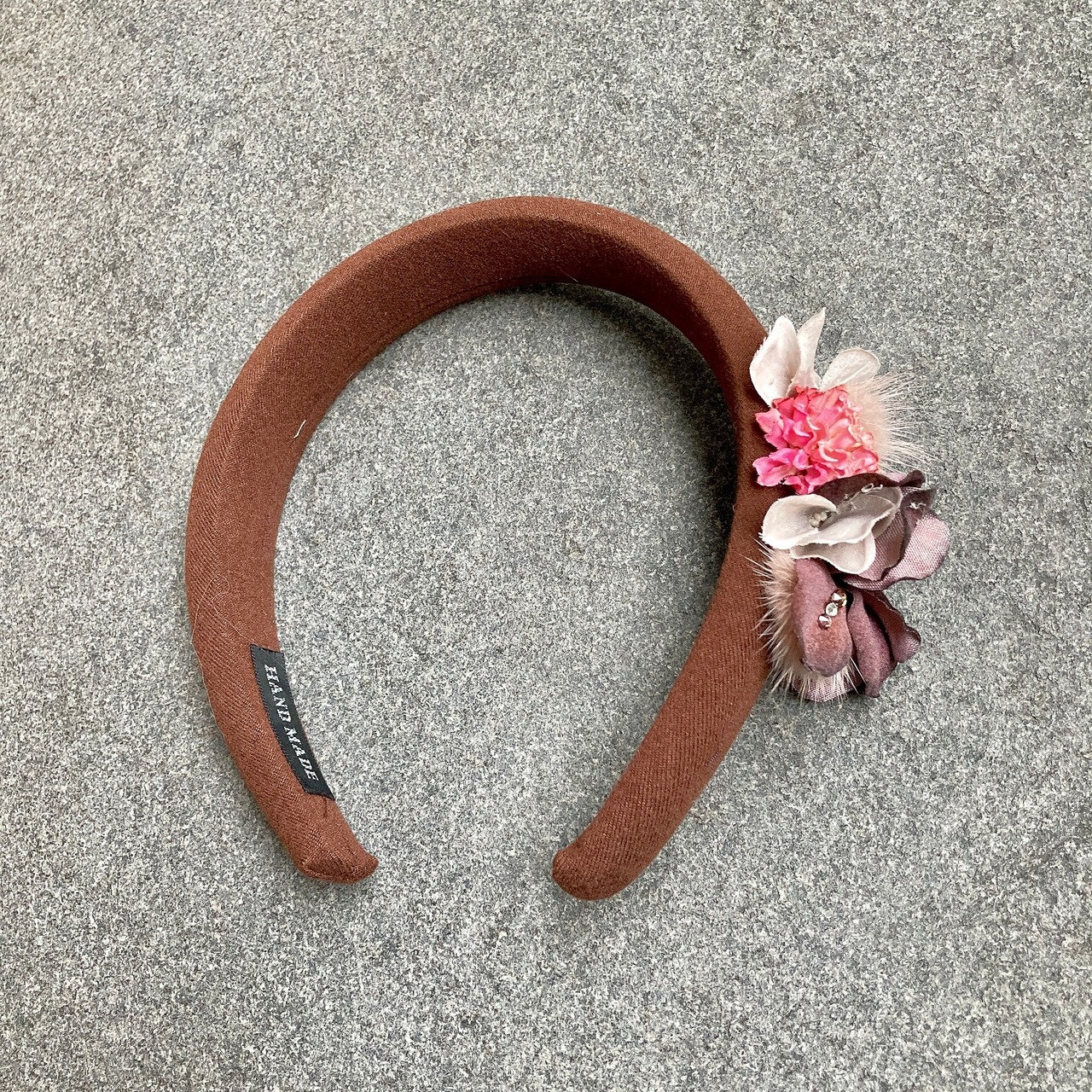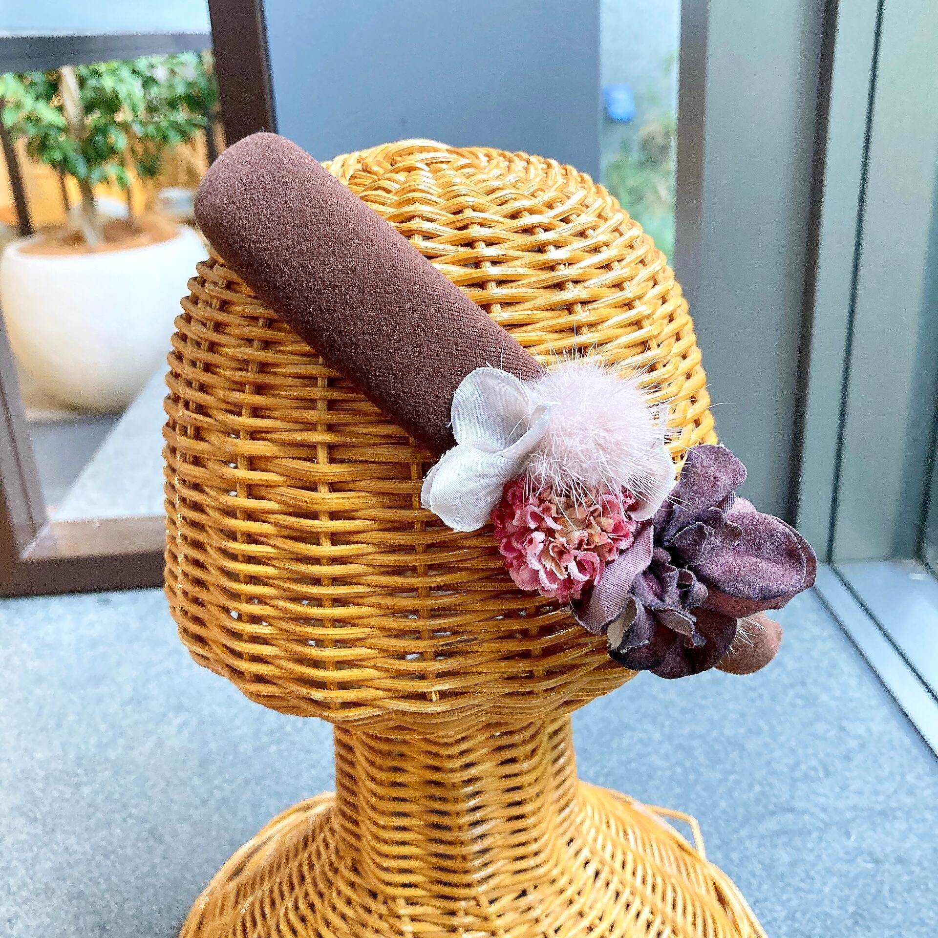 べージュの小さなファーをアクセントにした、これからの季節にぴったりのカチューシャ。