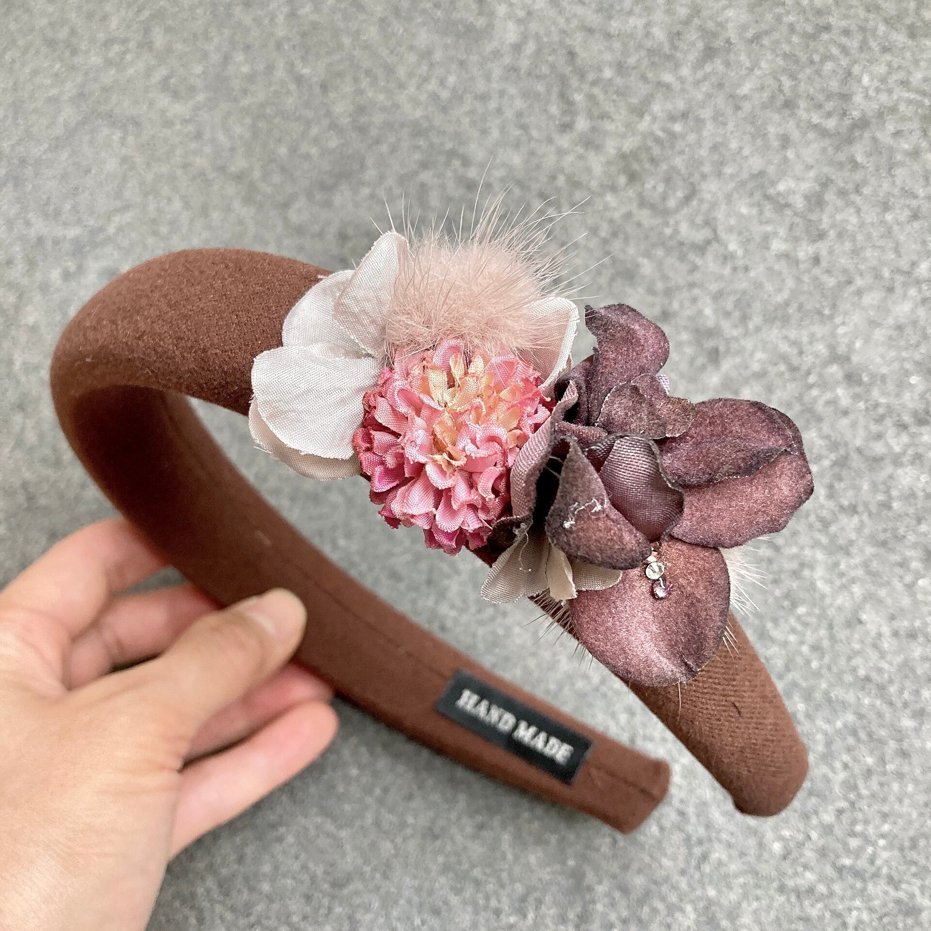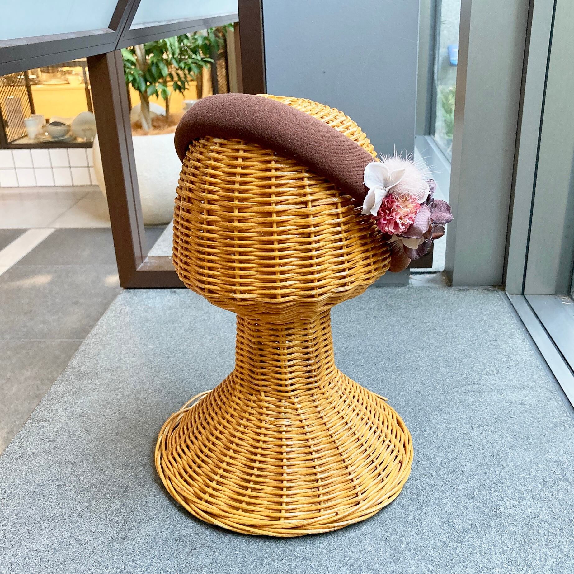 独創的な配色が特徴の大人の花アイテム。手染めのアートフラワーで作るコサージュ、ヘアアクセは全て1点もの。