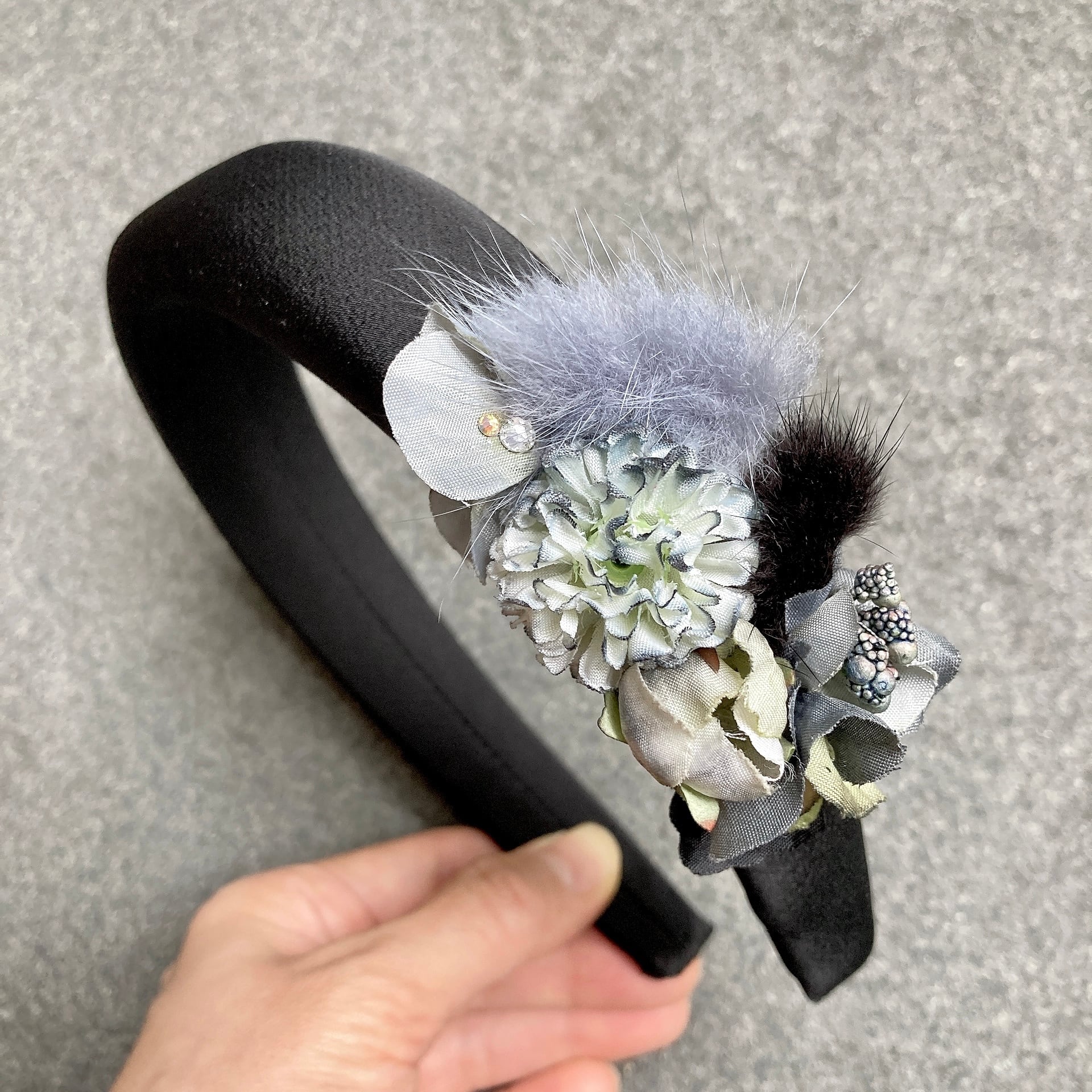 小さなファーをアクセントにしたこれからの季節にぴったりのカチューシャ。