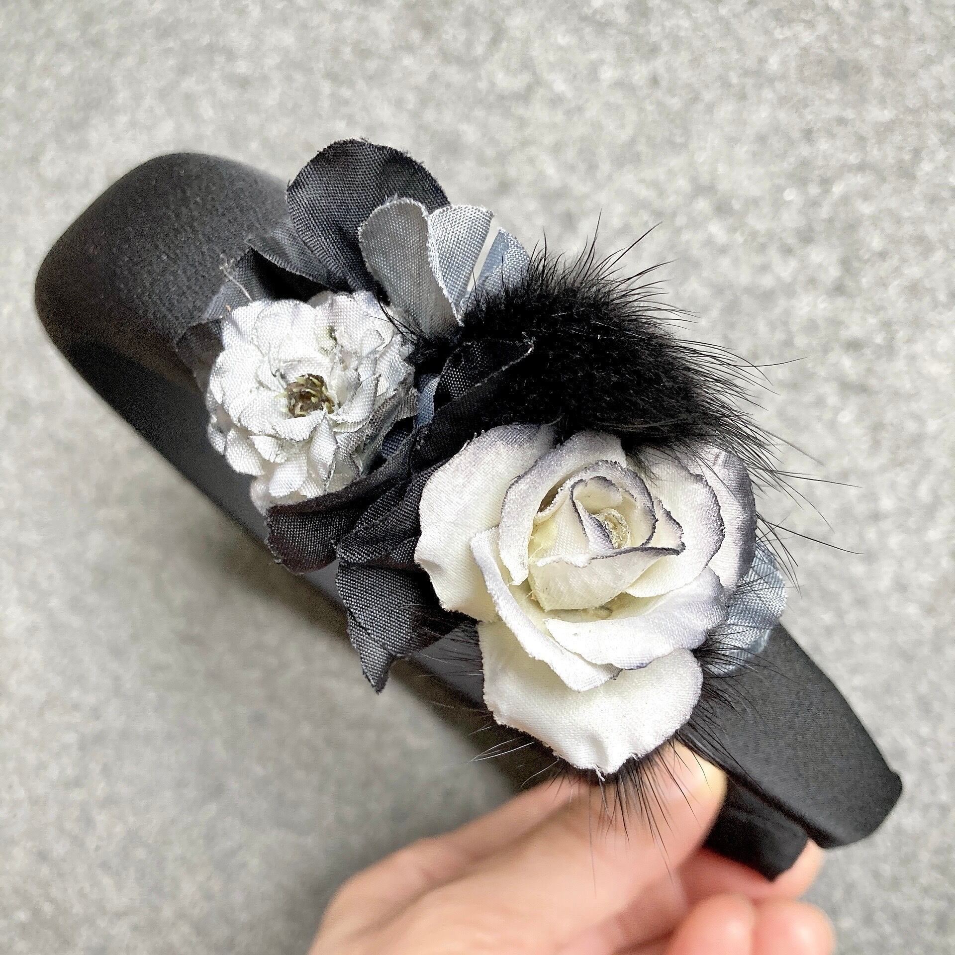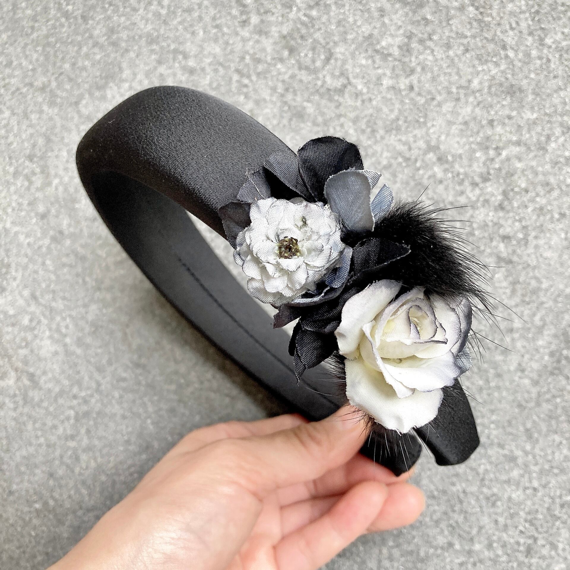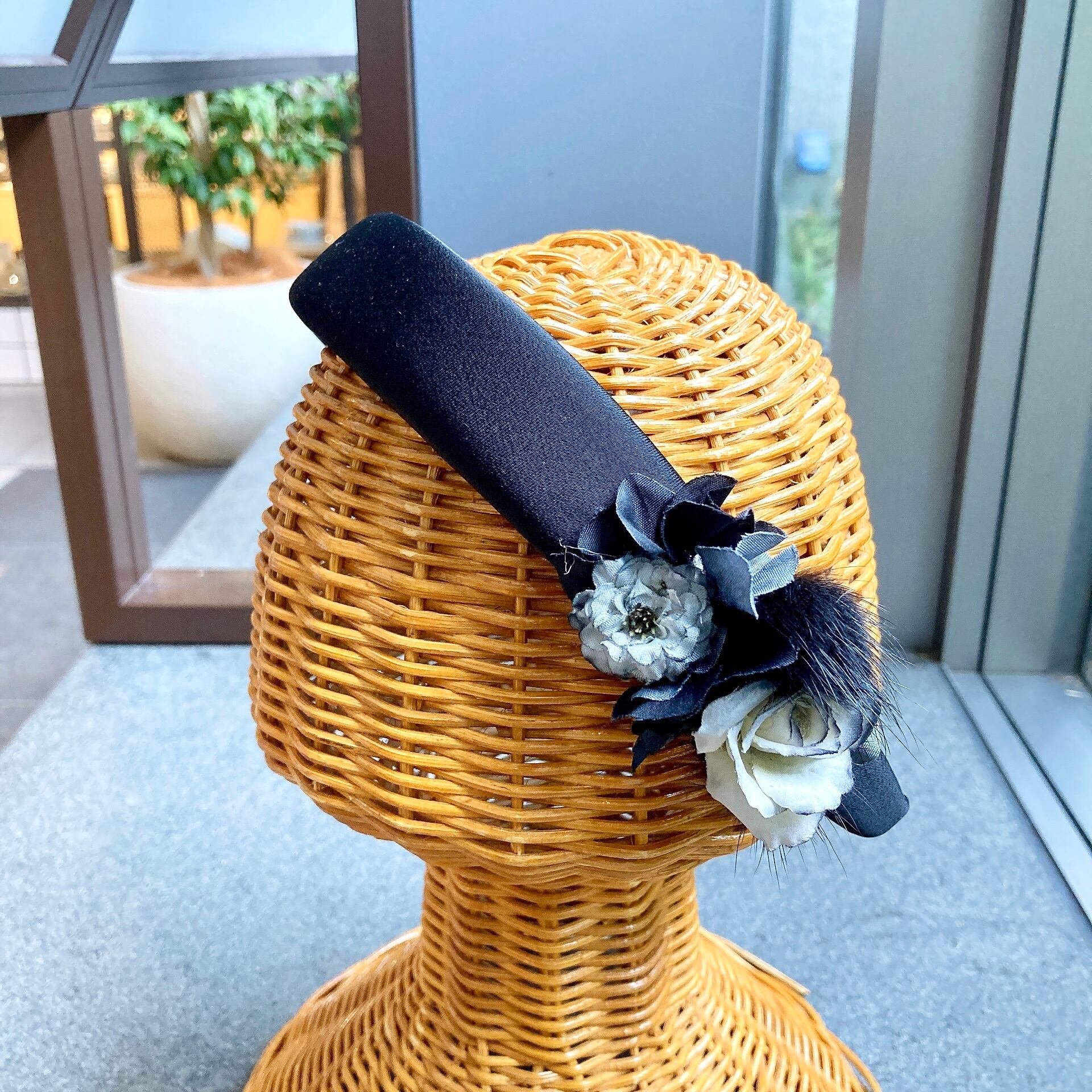 黒のファーをアクセントにした黒のカチューシャ。こちらは少し改まった感じや華やかな感じになります。