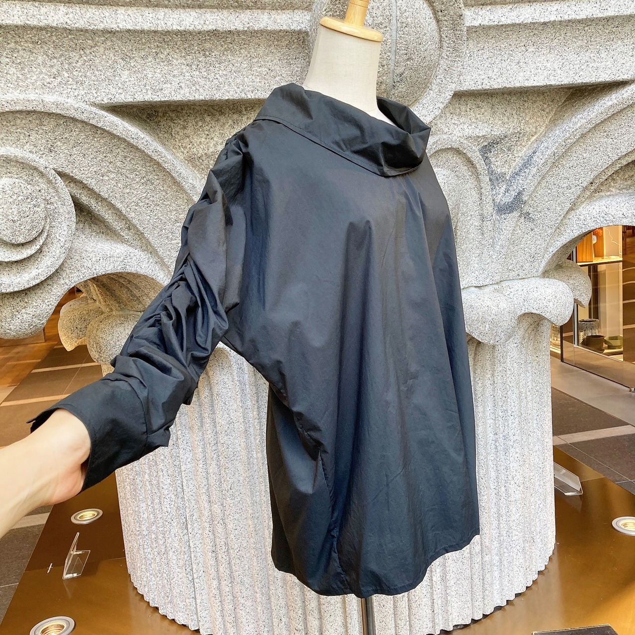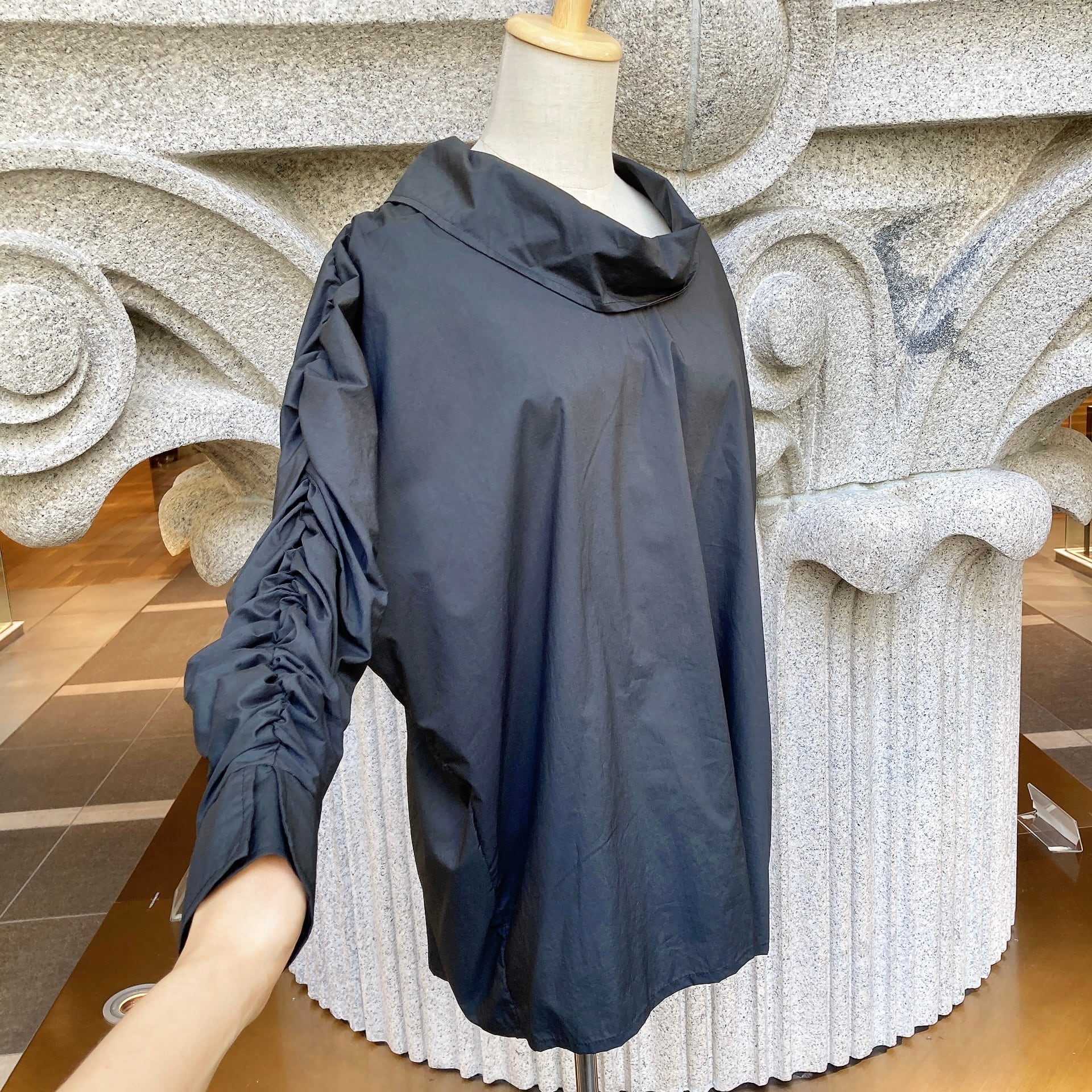 存在感のあるギャザーブラウス。