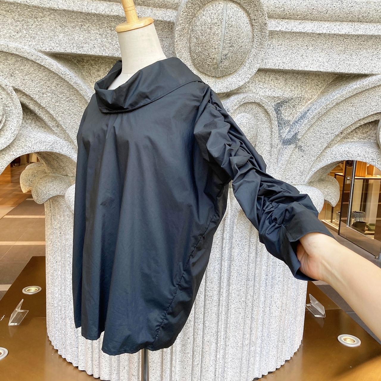 腕に施されたギャザーが、シンプルながらも魅力を醸し出します。