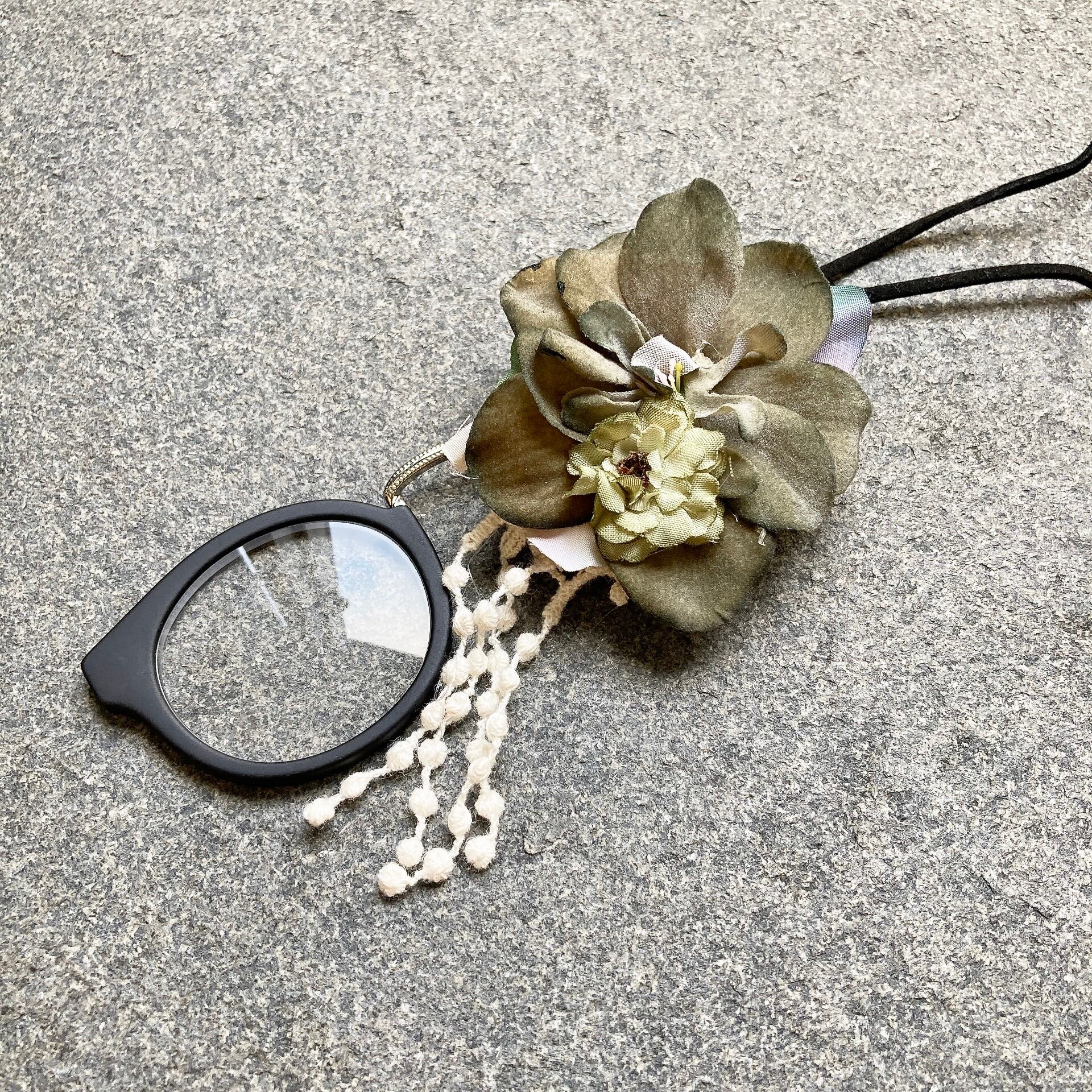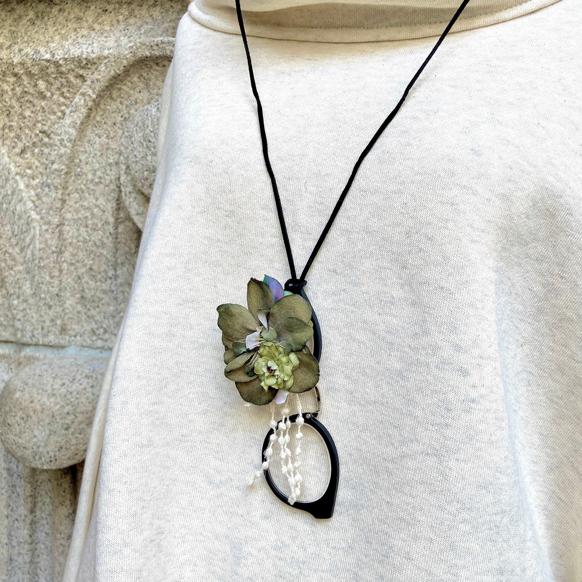 ルーペにcotocotoらしいお花をつけてネックレスに仕立てました。