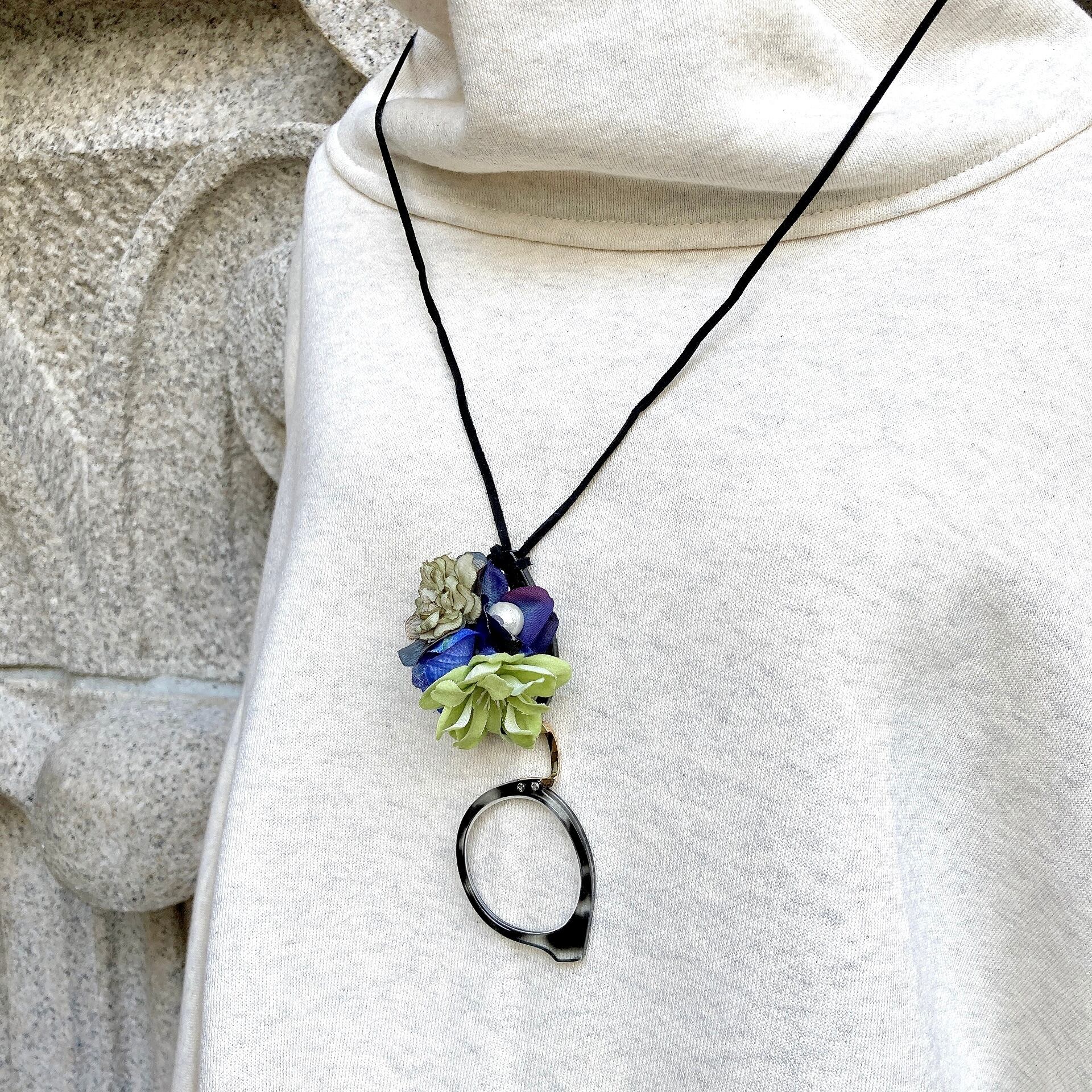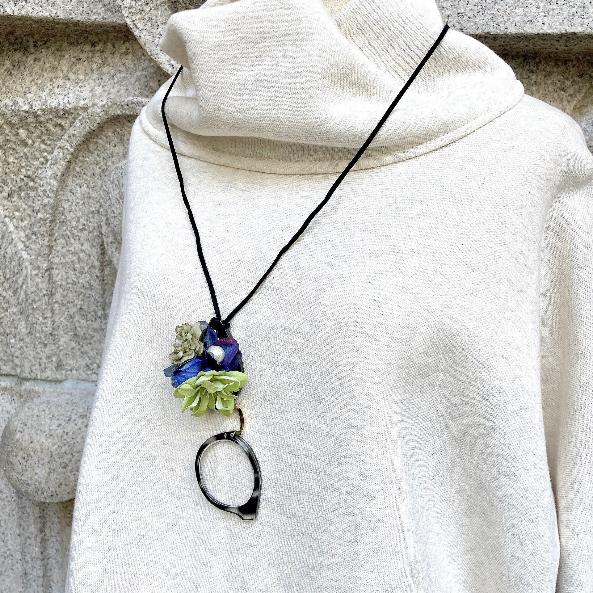 ルーペにcotocotoらしいお花をつけてネックレスに仕立てました。