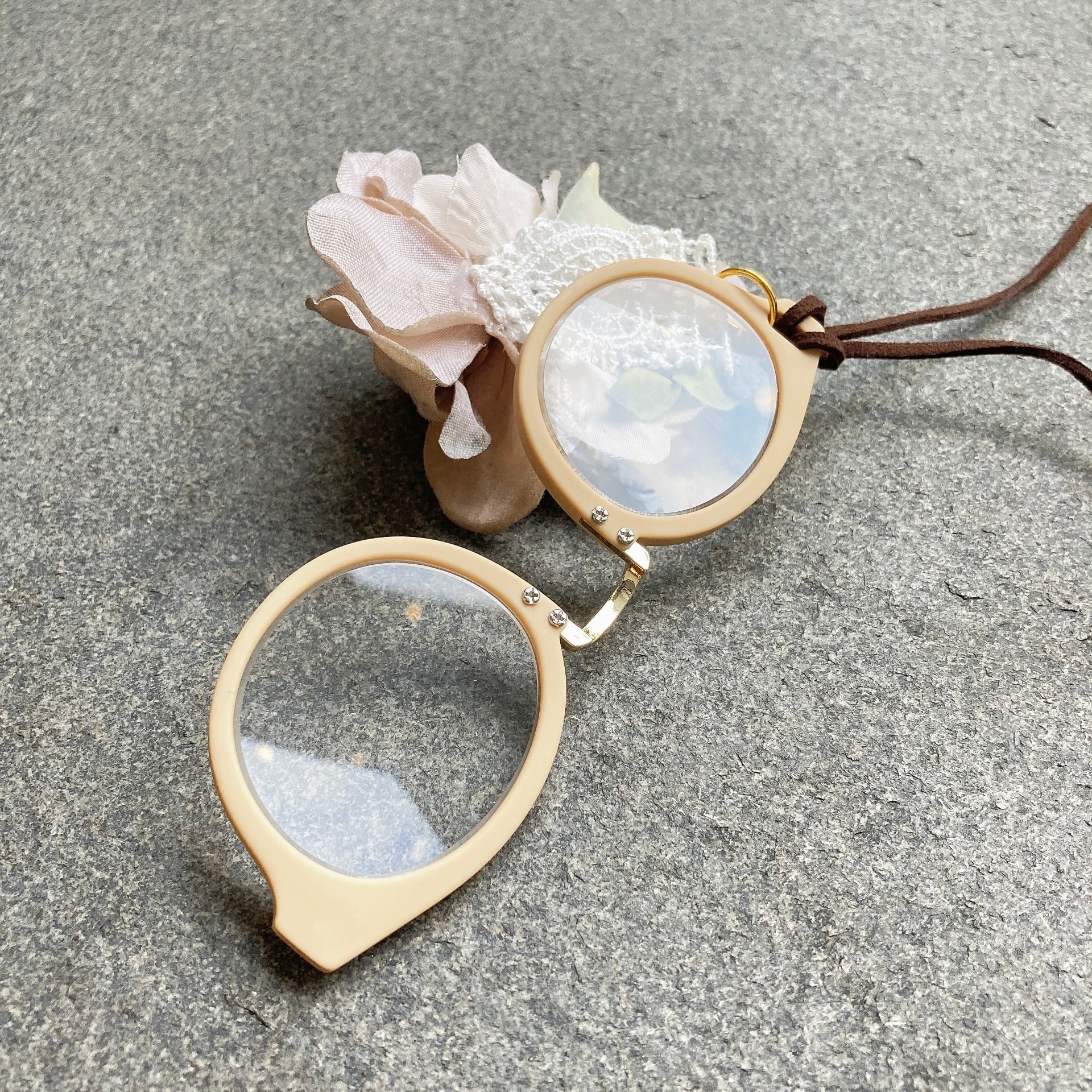 ルーペにcotocotoらしいお花をつけてネックレスに仕立てました。