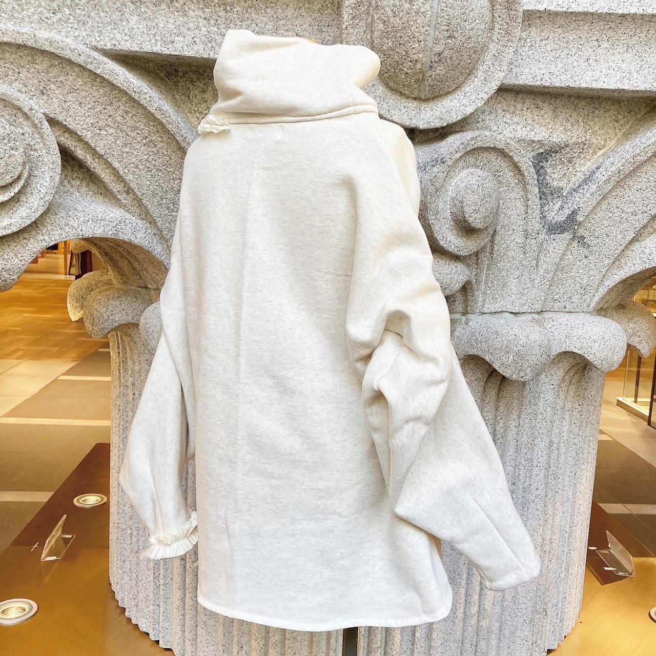 裏起毛仕立てで、寒い季節でも暖かく過ごせる一枚となっています。