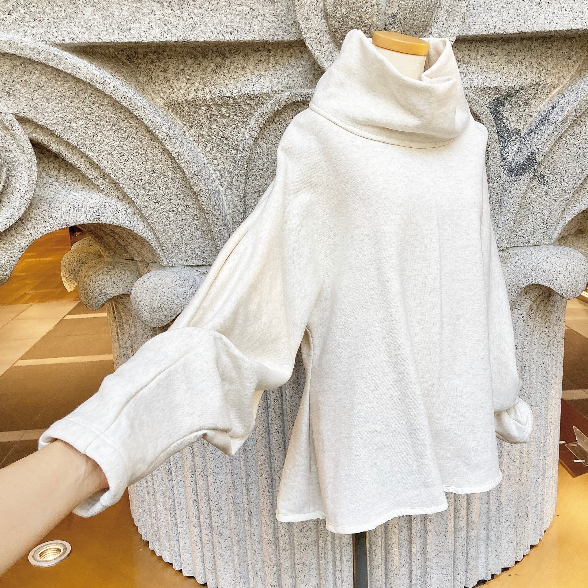 裏起毛仕立てで、寒い季節でも暖かく過ごせる一枚となっています。