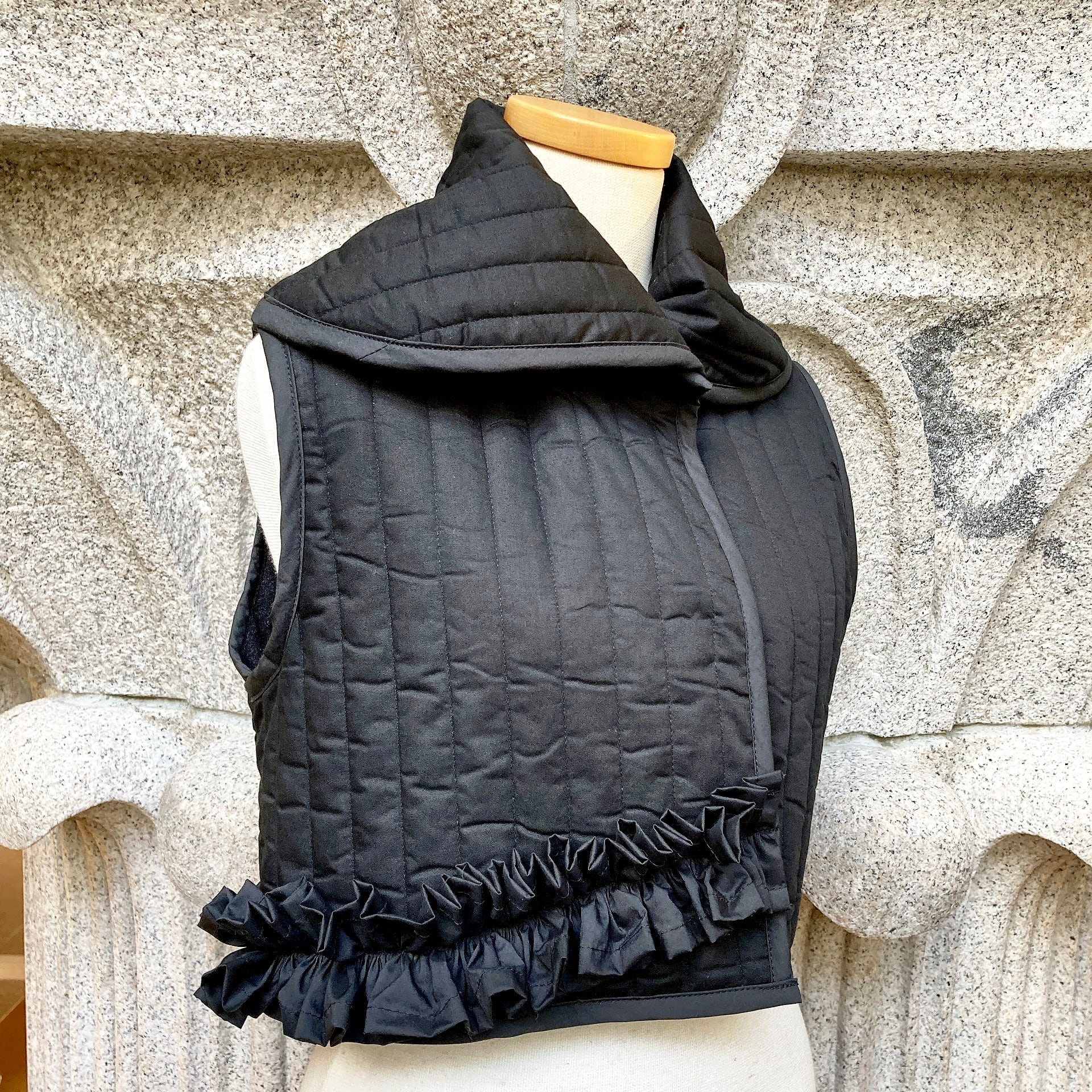 キルティング素材のショートベストは、小柄な方にぴったりなデザイン。