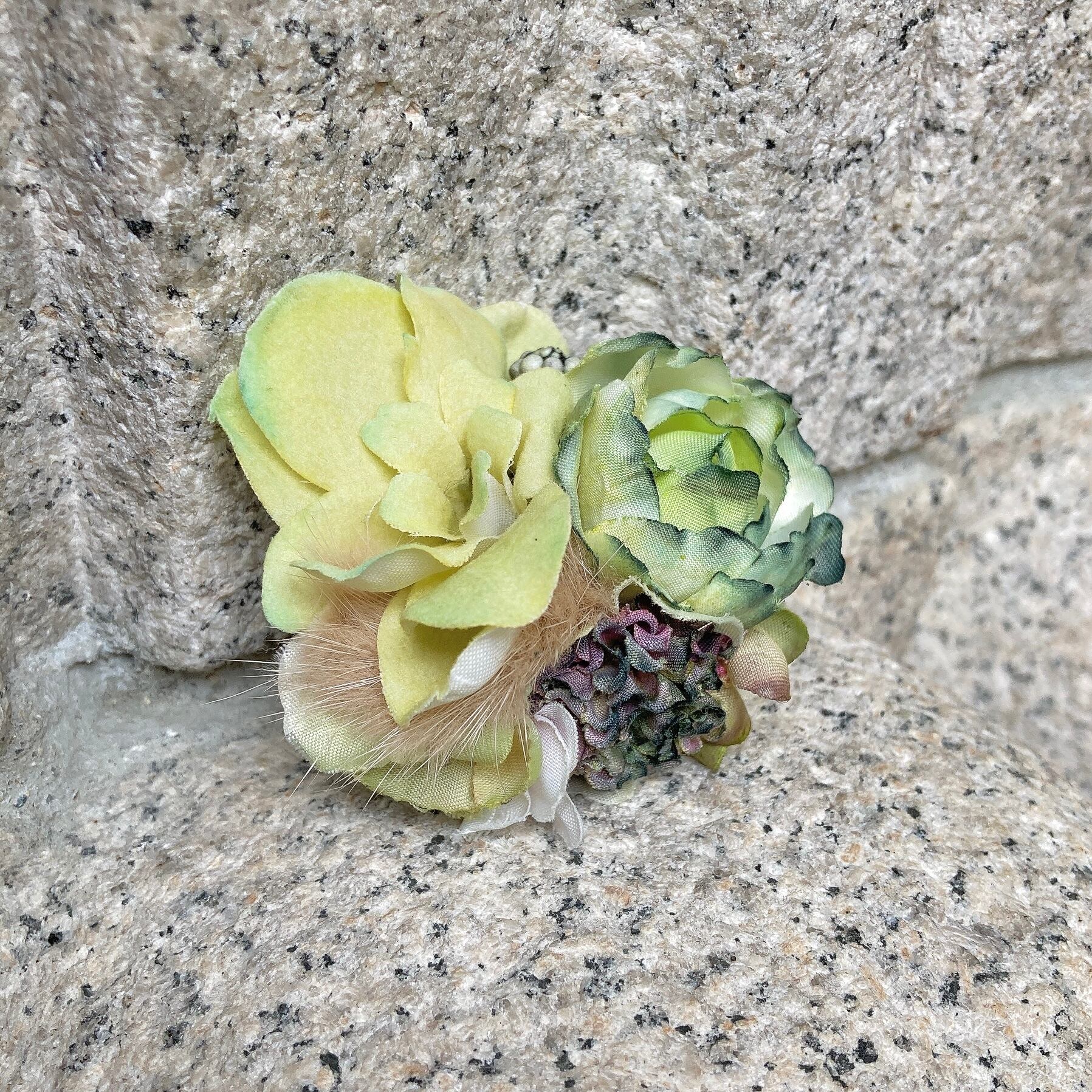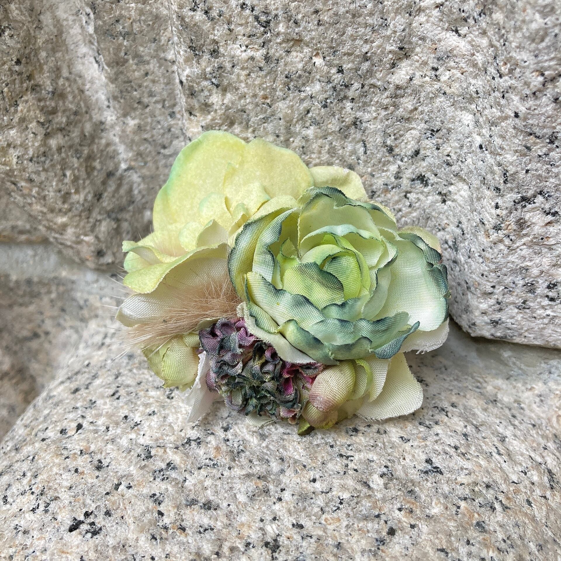 イエローグリーンのコサージュ