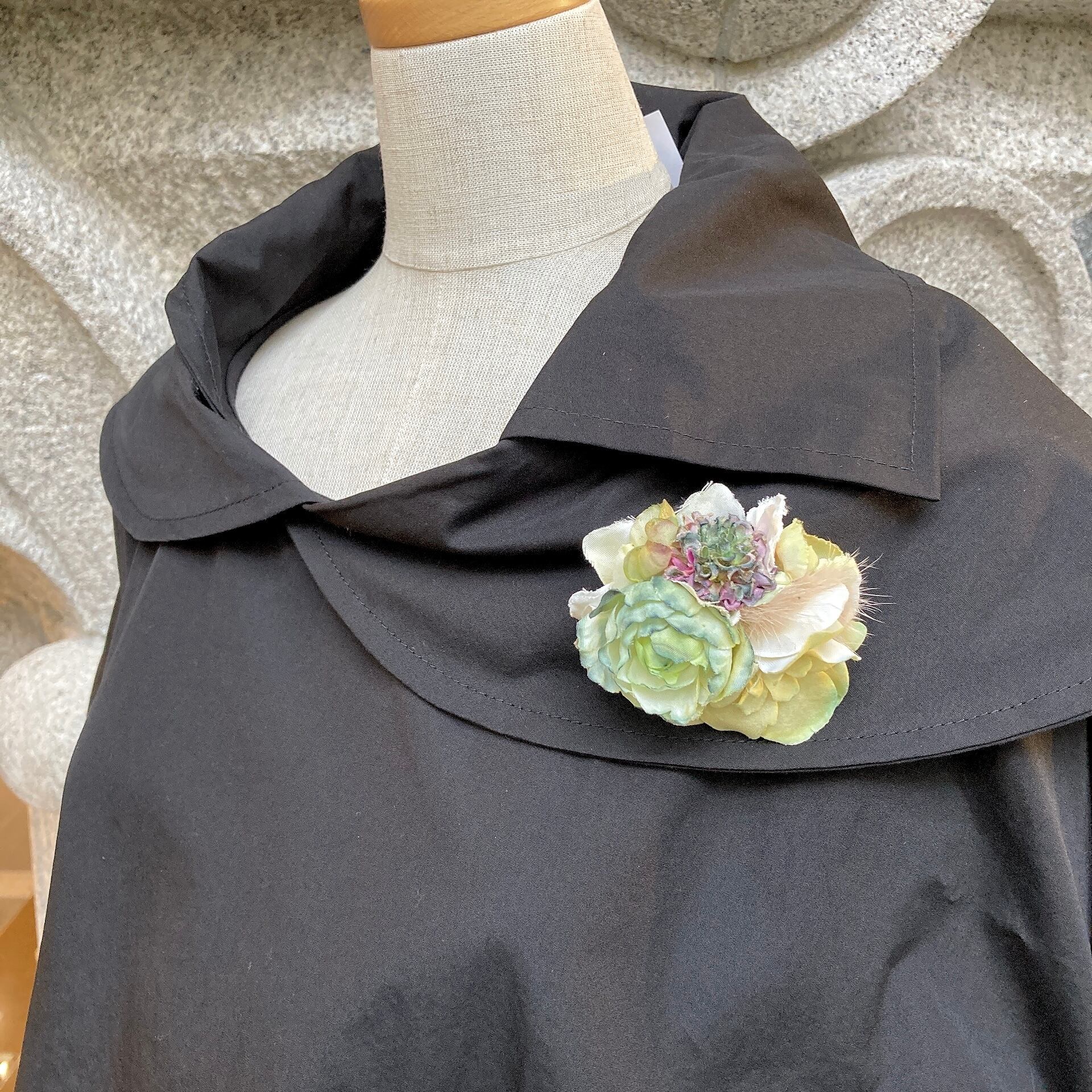 独創的な配色が特徴の大人の花アイテム。手染めのアートフラワーで作るコサージュ、ヘアアクセは全て1点もの。コサージュはマグネットで留めるので安心です。