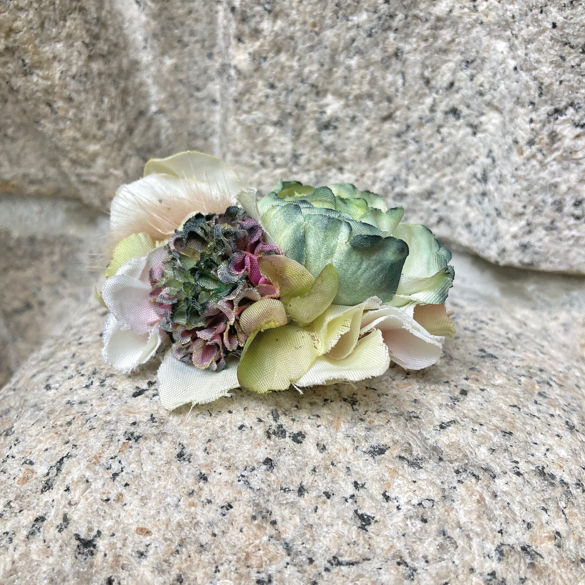 手染めのお花を使っておりますので、水濡れ、またそれにより色移りには十分ご注意くださいませ。
