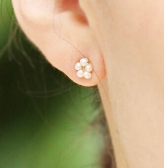 小粒の淡水パールを5粒合わせてお花に見立てたピアス(イヤリング)。