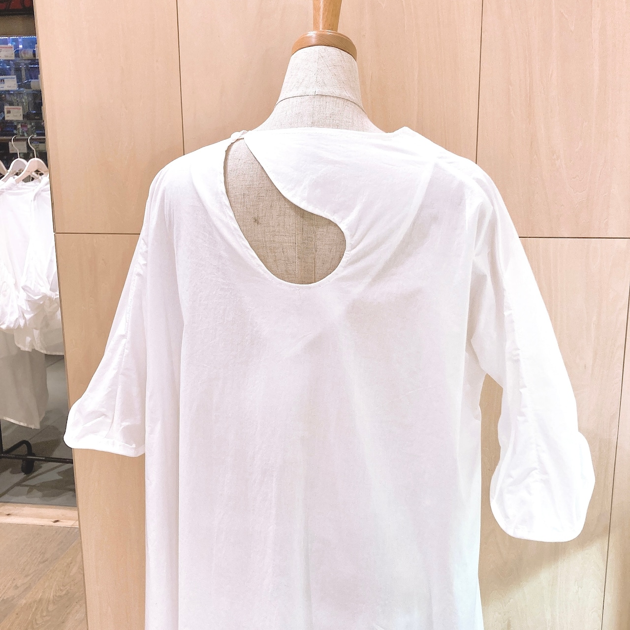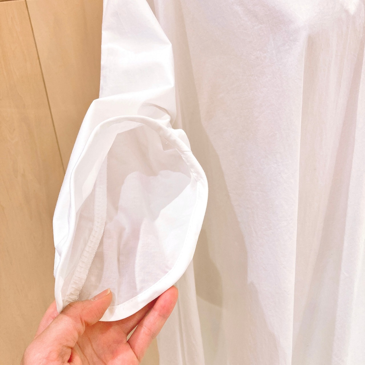 シンプルなデザインですが、お袖にさりげなくワイヤーが使われていて着て頂くと少しスパイスの効いた一枚です。