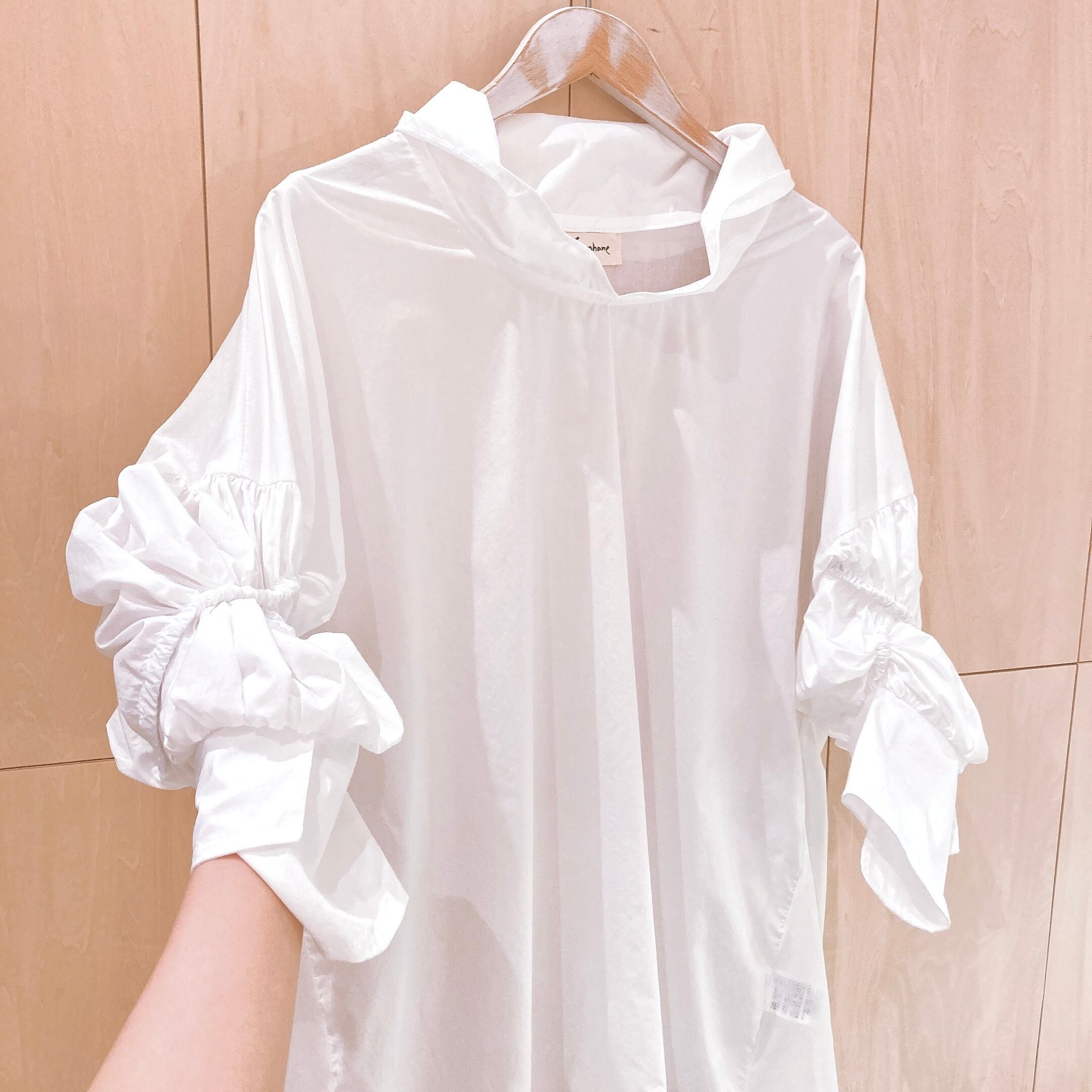 お袖にゴムが入っていて、寄せたタックでデザインされています。
