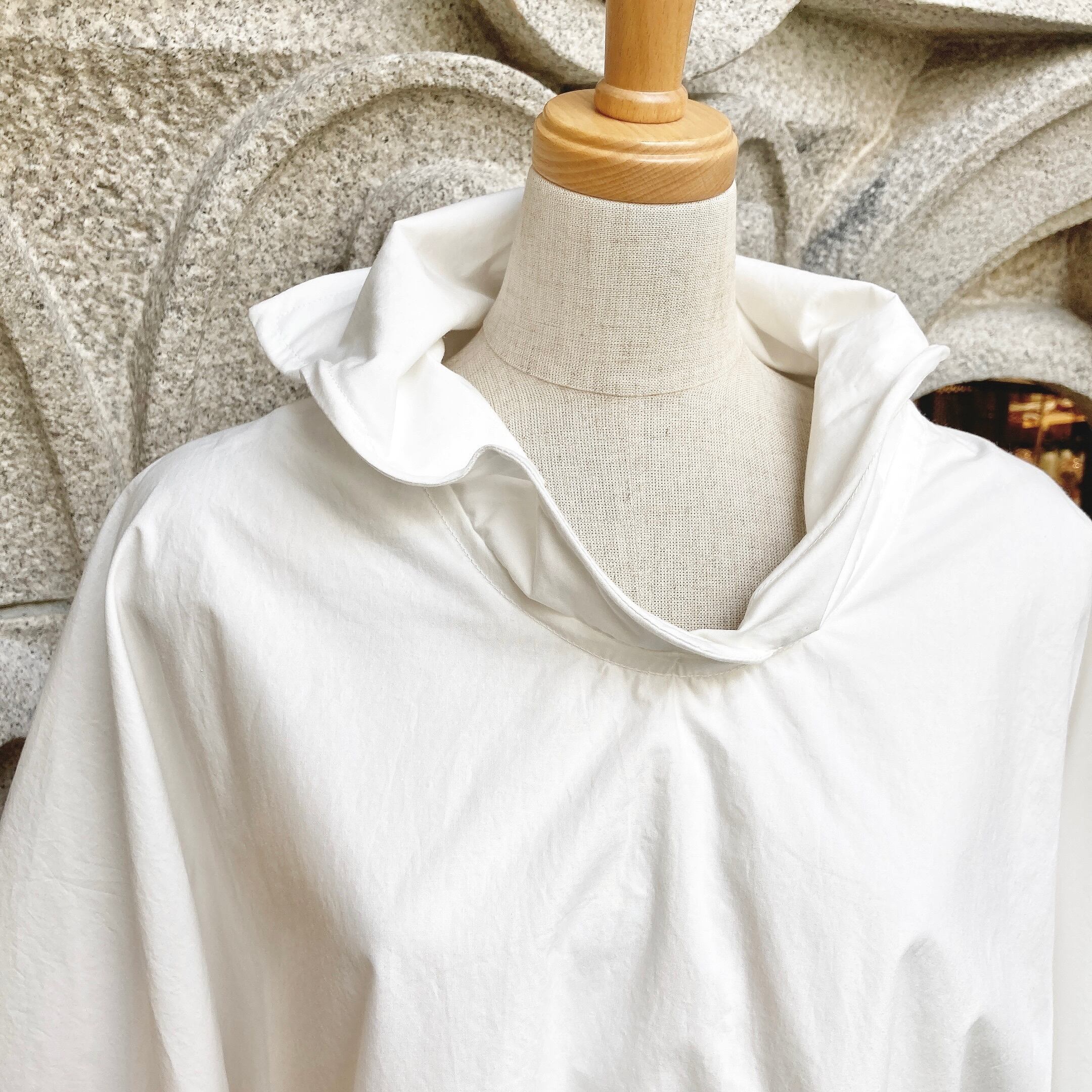 ワイヤーの入った大きなお襟とお袖の形が特徴のブラウス。