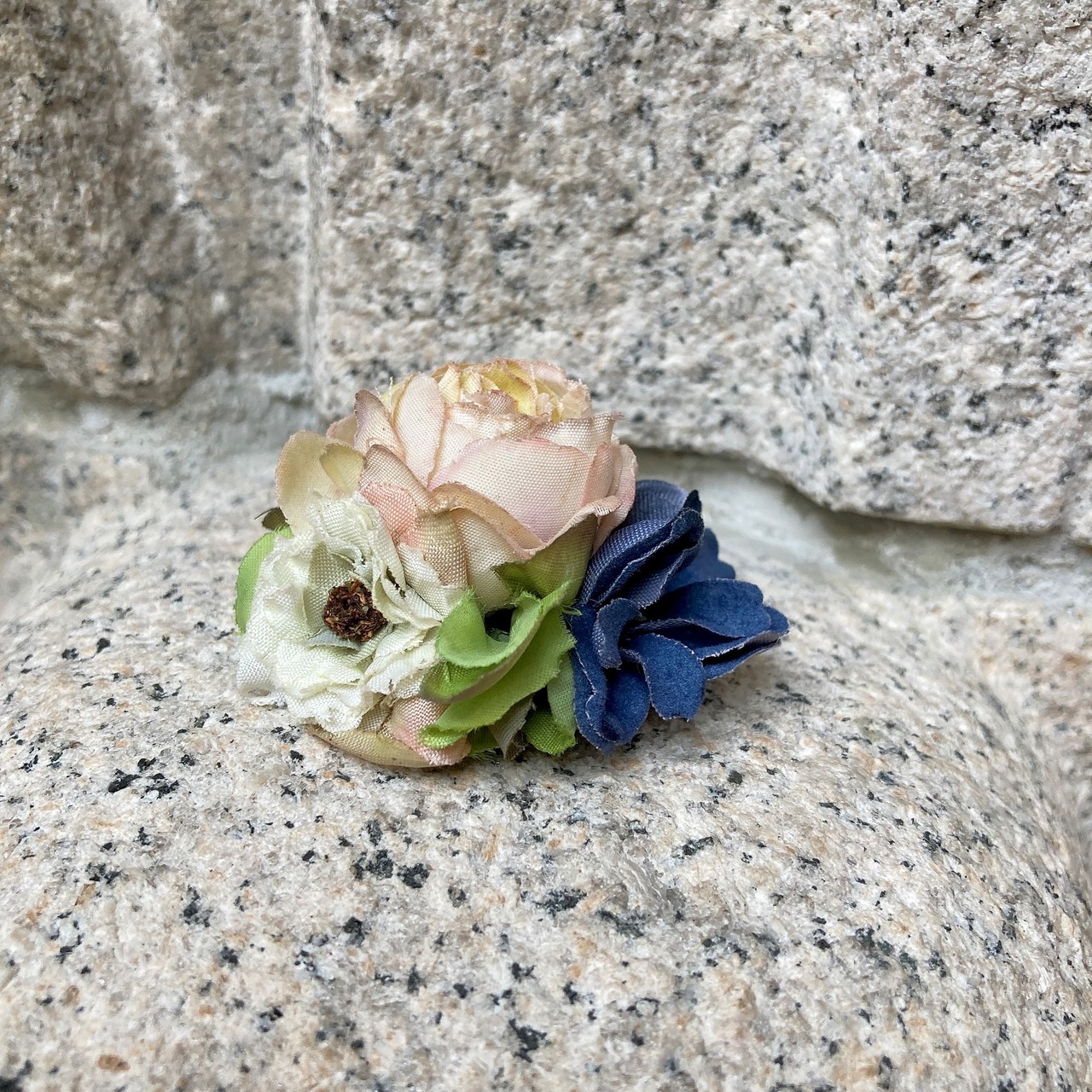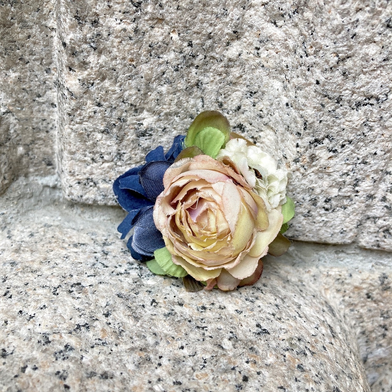 アンティーク感のあるピンクのローズとネイビーとグリーンを差し色にしてお色合わせしました。