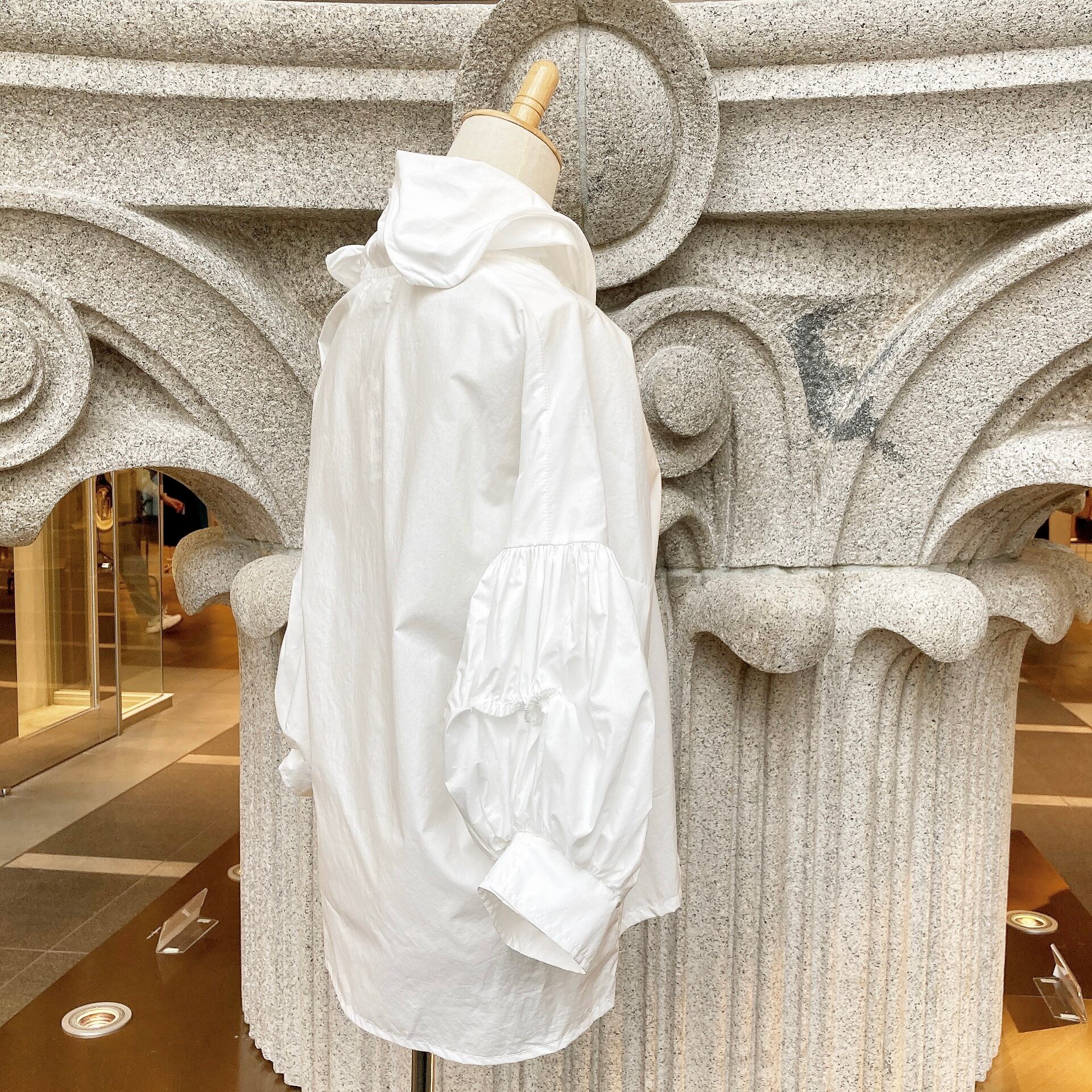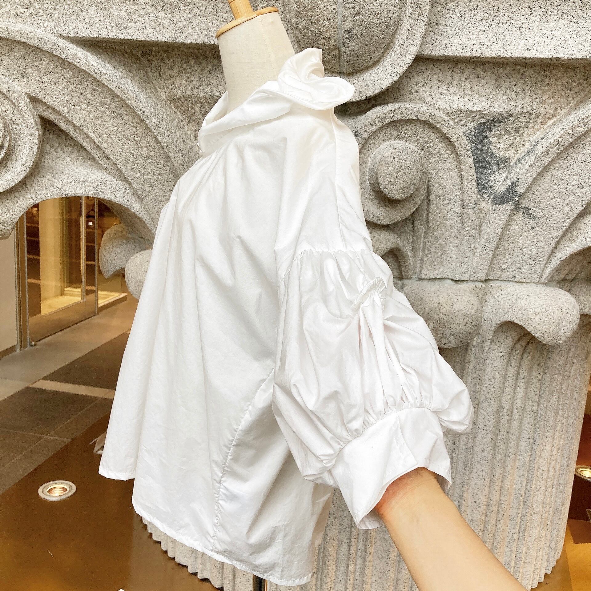 ふんわりとした袖とワイヤーがポイントの襟付きブラウス。